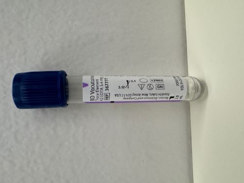 Transport 3 or 6 mL whole blood in the original collection tube (royal blue). (Min: 0.5 mL) OR Transport 3 mL whole blood in the original collection tube (tan). (Min: 0.5 mL)