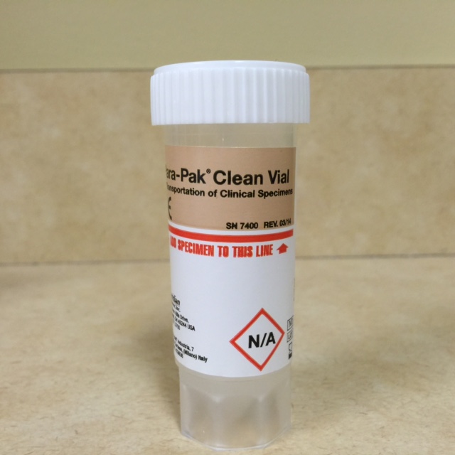 Liquid stool, that takes the shape of the container, collected in a clean sterile container. Preferred specimen: