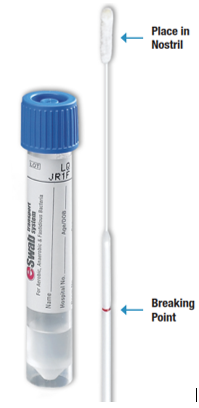 Eswab: Collect the nasal specimen by sampling both nares one at a time with the same Eswab. Refer to Specimen Collection Guide.