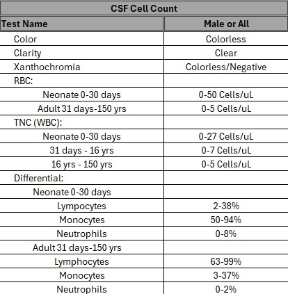 The CSF (cerebrospinal fluid) cell count measures the number of erythrocytes (red blood cells, RBC) and leukocytes (white blood cells, WBC) in the CSF. When a large number of nucleated cells are present in the fluid a differential will also be reported.Normally CSF is a clear fluid with scant cellularity; CSF circulates in the space surrounding the spinal cord and brain. Whenever cerebrospinal fluid is obtained for diagnostic purposes a CSF cell count is typically ordered. This test is especially useful when the physician suspects a central nervous system infection.